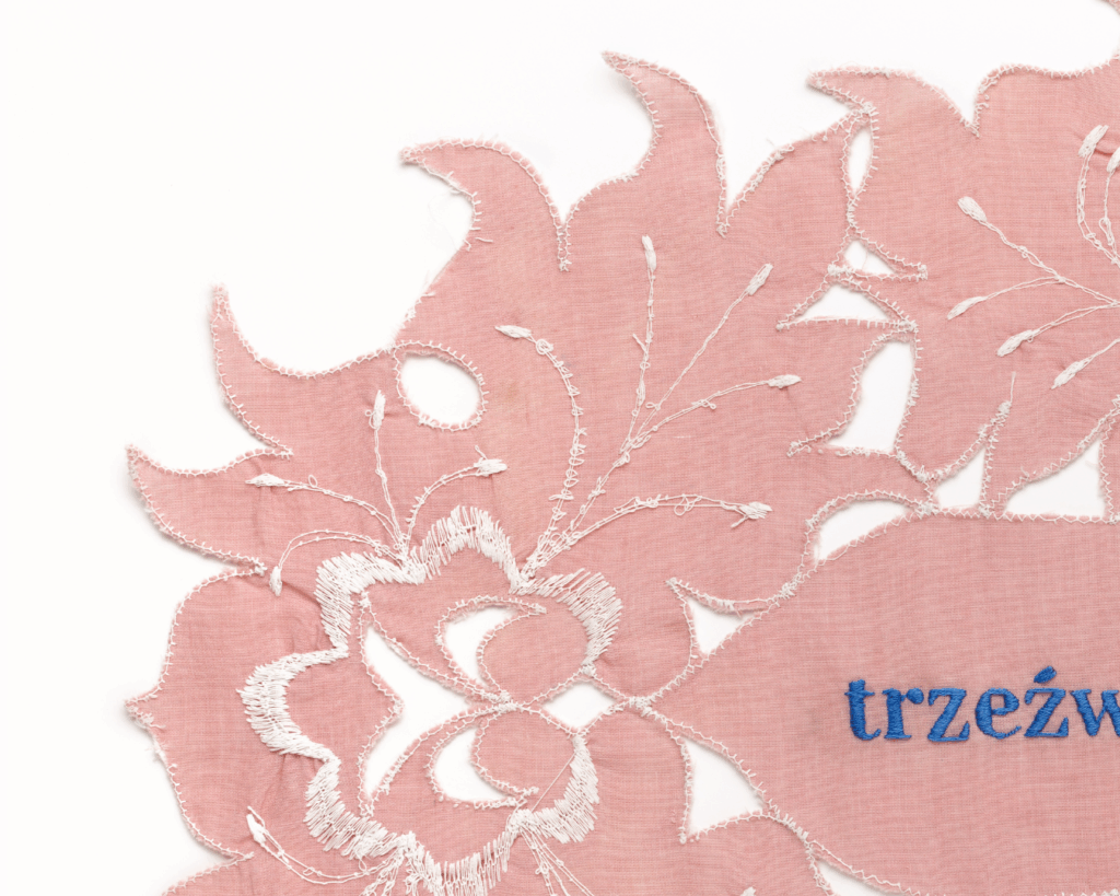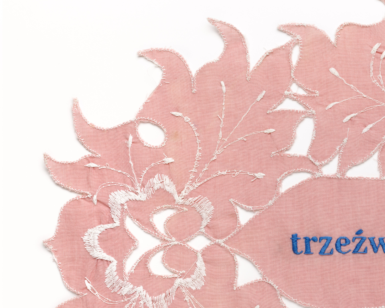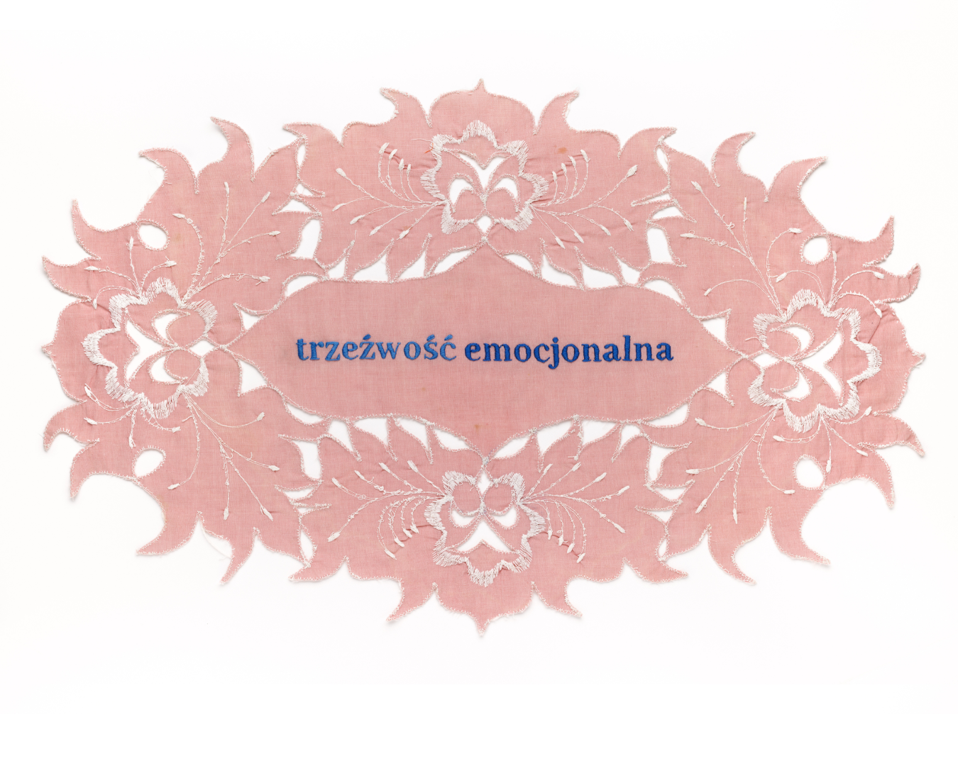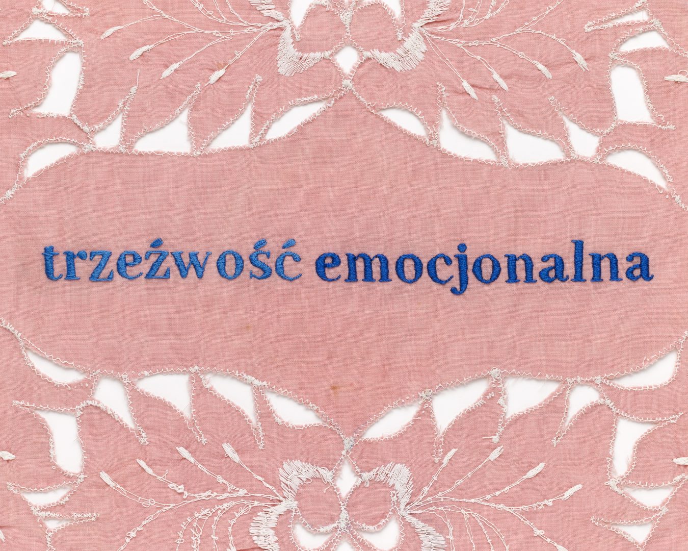 W tym cyklu wykorzystuję kupione lub przekazane mi serwetki i haftuję na nich teksty inspirowane profesjolektem języka terapeutycznego obecnym w naszej codzienności. Ten projekt jest krytycznym namysłem nad „przeterapeutyzowaną” komunikacją współczesności – jej schematami, uproszczeniami i wpływem na nasze relacje. Użycie serwetek z historią otwiera dodatkowy dialog: pomiędzy mną a anonimową hafciarką. pomiędzy czułością a zmęczeniem, pomiędzy pragnieniem braku zmian a potrzebą sprzeciwu.