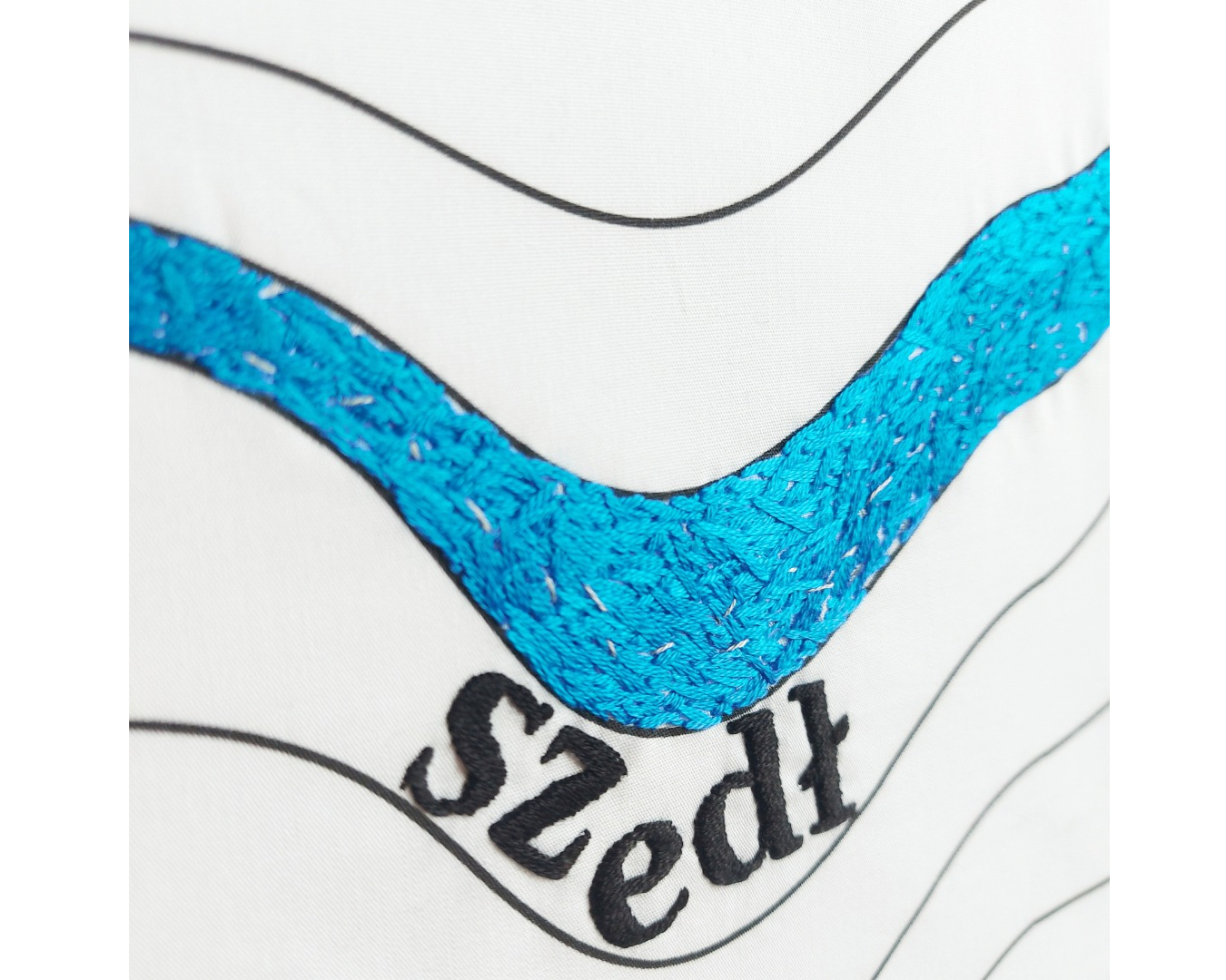 Technika: haft ręczny na tkaninie bawełnianej z printem